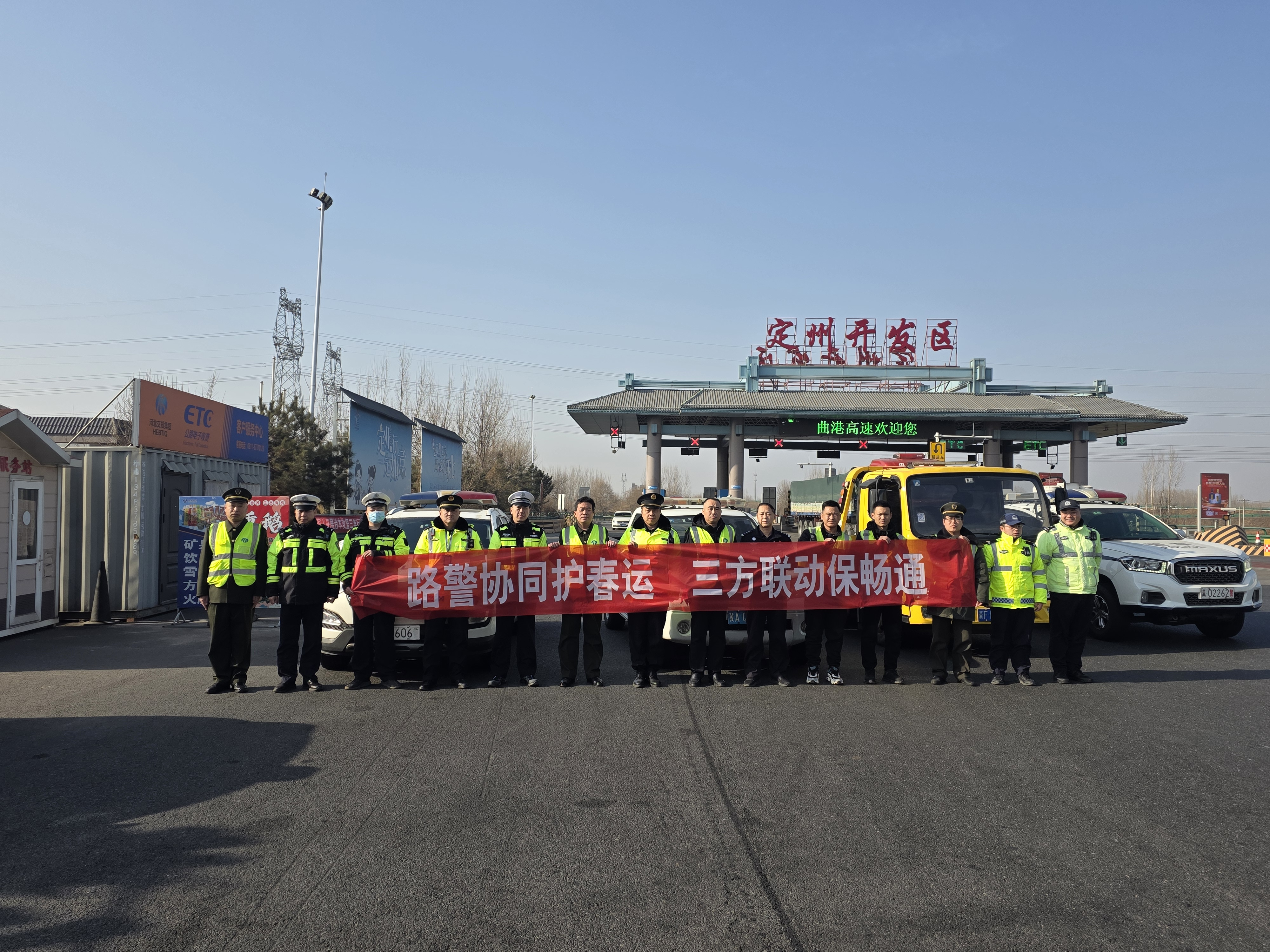 长城网·冀云客户端讯(通讯员 李晓飞)为持续做好2026年春运期间道路安全保畅工作,保障人民群众安全、顺畅出行,2月4日,河北曲港高速公路开发有限公司联合辖区高速交警、高速路政、地方交警在定州开发区收费站收费广场共同开展了“路警协同护春运 三方联动保畅通”专项活动启动仪式。多方就春运期间车流量特点、易发生拥堵路段、交通事故应急处置流程等进行了深入交流,并制定了详细的联动工作方案。